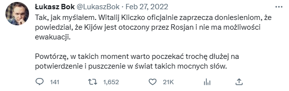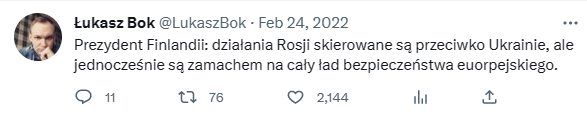 Rysunek 14. Wpis opiniotwórczy – Łukasz Bok, platforma X (27.02.2022).