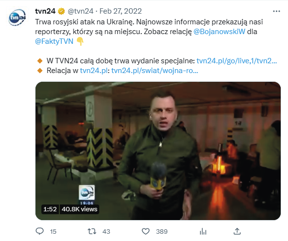 Rysunek 19. Relacja reportera – TVN24, platforma X (27.02.2022).