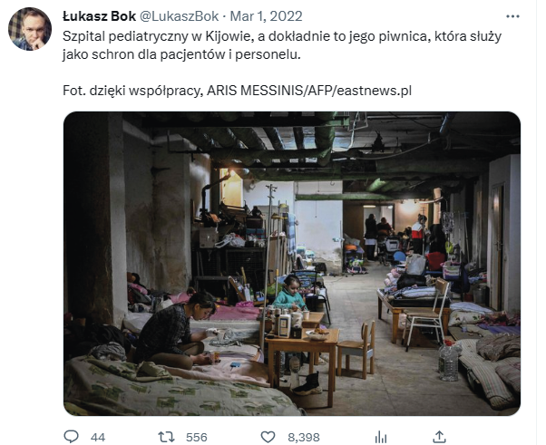 Rysunek 12. Wpis społeczny (schron dla pacjentów) – Łukasz Bok, platforma X (01.03.2022).