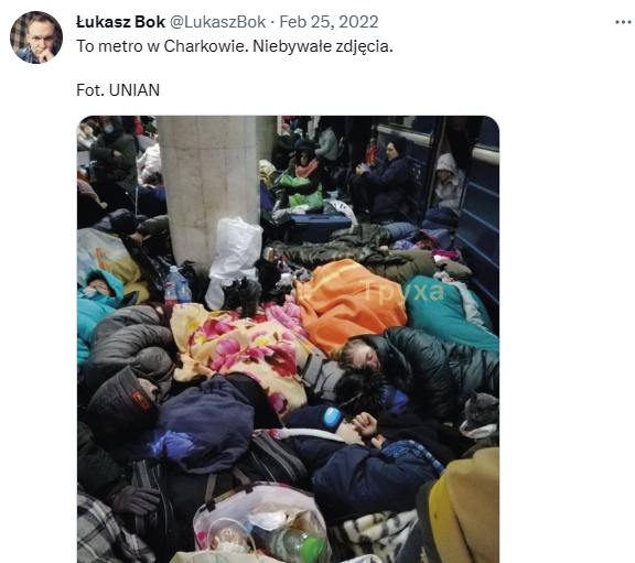Rysunek 13. Wpis społeczny (stacja metra) – Łukasz Bok, platforma X (25.02.2022).